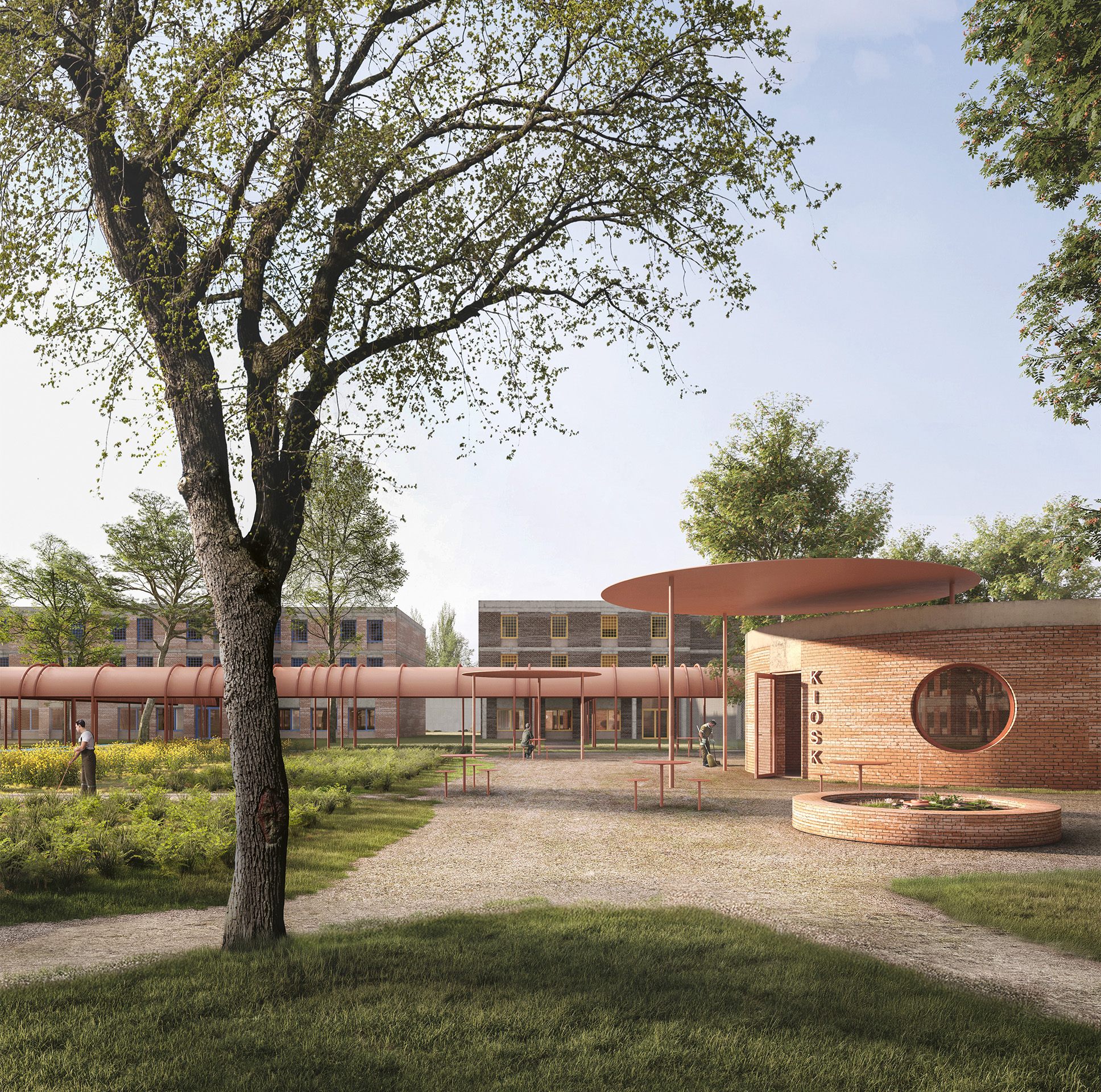 Alle fünf Entwürfe erfüllten die Vorgaben, alle mit Mängeln. Mal war es der Brandschutz, mal die Sicherheit und mal das Raumprogramm. In der engeren Wahl blieben drei Projekte, von denen letztlich die ARGE Penzel Valier und Drees & Sommer überzeugte. Die Neubauten sind geschickt entlang der bestehenden Achsen platziert, die Freiräume gut gefasst. Ein Wandelgang verbindet die Areal­teile. Die Organisation ist klar und die Innenräume sind wohnlich gestaltet. Die Jury lobte den Grünraum, der dem Areal eine neue Mitte gibt. Weiterhin fraglich bleiben dafür der Brandschutz, das Aufzugskonzept und die Umsetzung der Re-Use-Fassade. Das Projekt wirkt städtebaulich souverän, funktional und ist atmosphärisch stark.