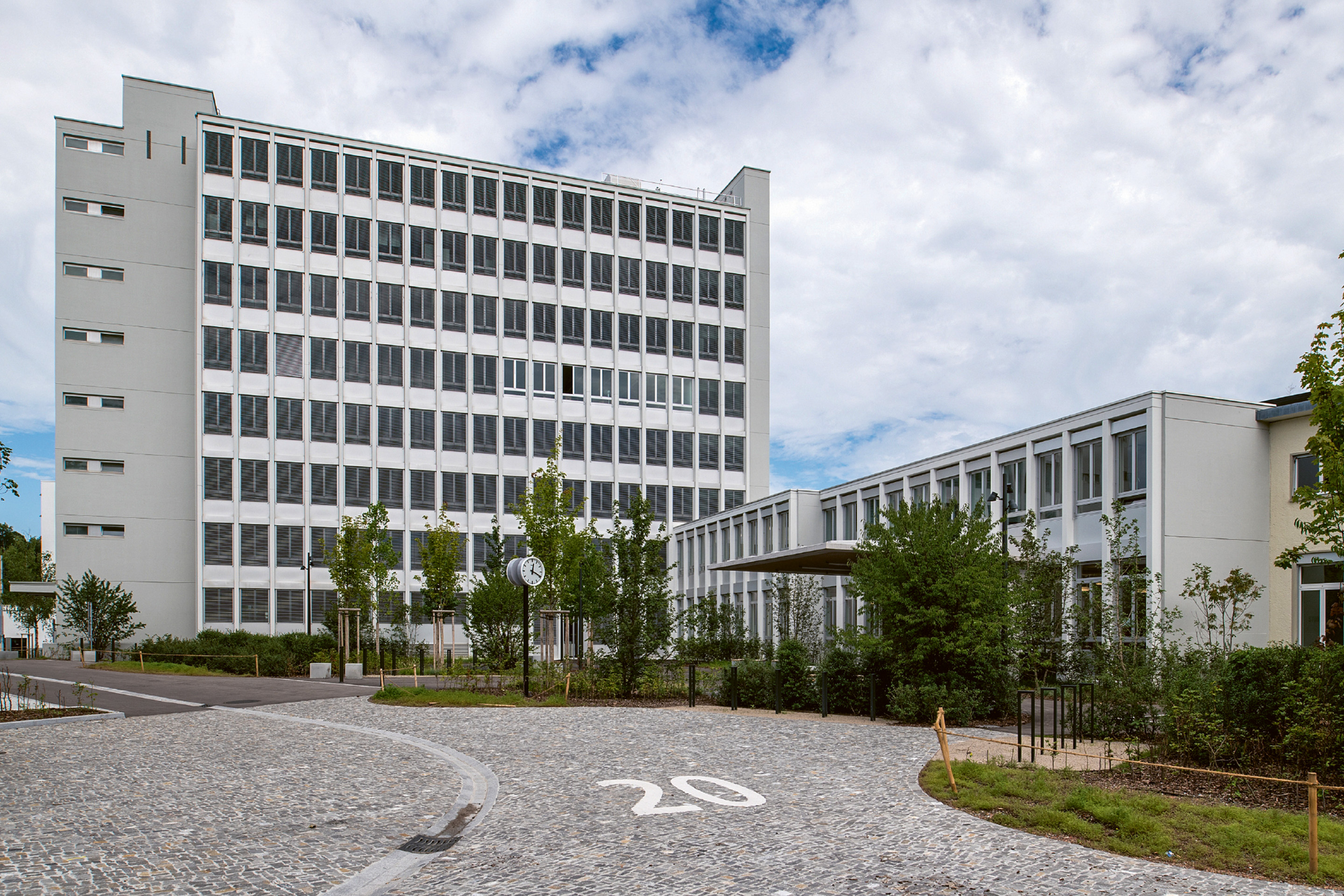 Das Areal Brunnenhof ist ein perfektes Beispiel für den breiten Einsatz des Werkzeugkastens. Der erste und grösste Klimaschutzentscheid war, ein bestehendes Gebäude umzunutzen. Über den Erhalt des ehemaligen Radiostudios von SRF wurde bereits im TEC21-Sonderheft «Netto-Null bis 2040» berichtet. Die Umnutzung, bei der die Interventionen auf das Nötigste beschränkt wurden, spart im Vergleich zu einem Neubau geschätzte 60 bis 80 % der indirekten Treibhausgasmissionen ein. Die Erstellungsemissionen liegen bei sehr niedrigen 2.9 kg CO₂e/m²a.