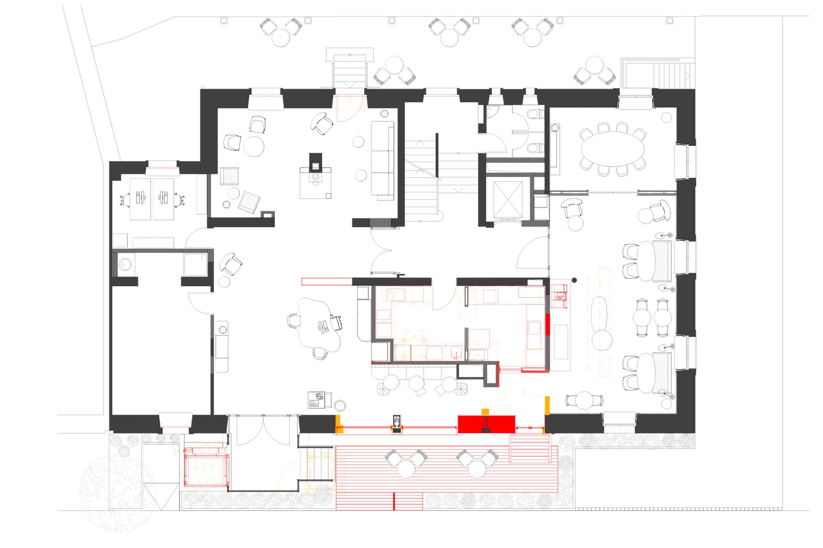 Innen bleibt das Haus, was es immer war: ein Gefüge aus Zimmern, Korridoren, Nischen. Genau darin liegt seine Qualität. Der Umbau verzichtet bewusst auf die grosse Geste. Stattdessen wird das Erdgeschoss neu organisiert – nicht als Abfolge geschlossener Räume, sondern als offenes Kontinuum.