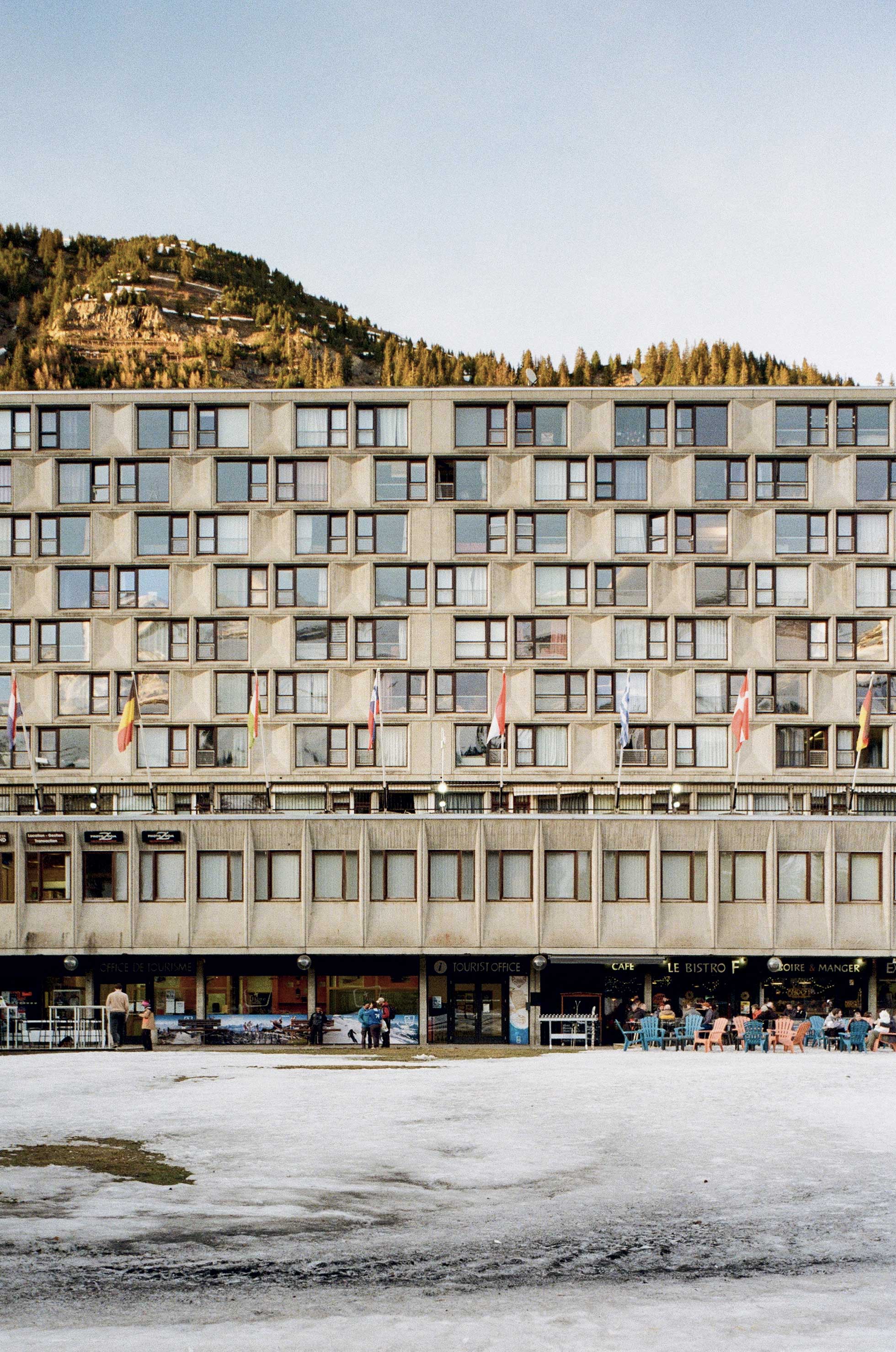 Inaugurée en 1969, la station de Flaine en Haute-Savoie (F) n’a cessé d’évoluer. Si la pression touristique a bousculé son image brutaliste en disséminant de nouvelles résidences dans la montagne, de récentes opérations contredisent cette tendance. Implantée au centre de la station, la résidence Alhéna de R Architecture questionne la muséification des bâtiments historiques.
