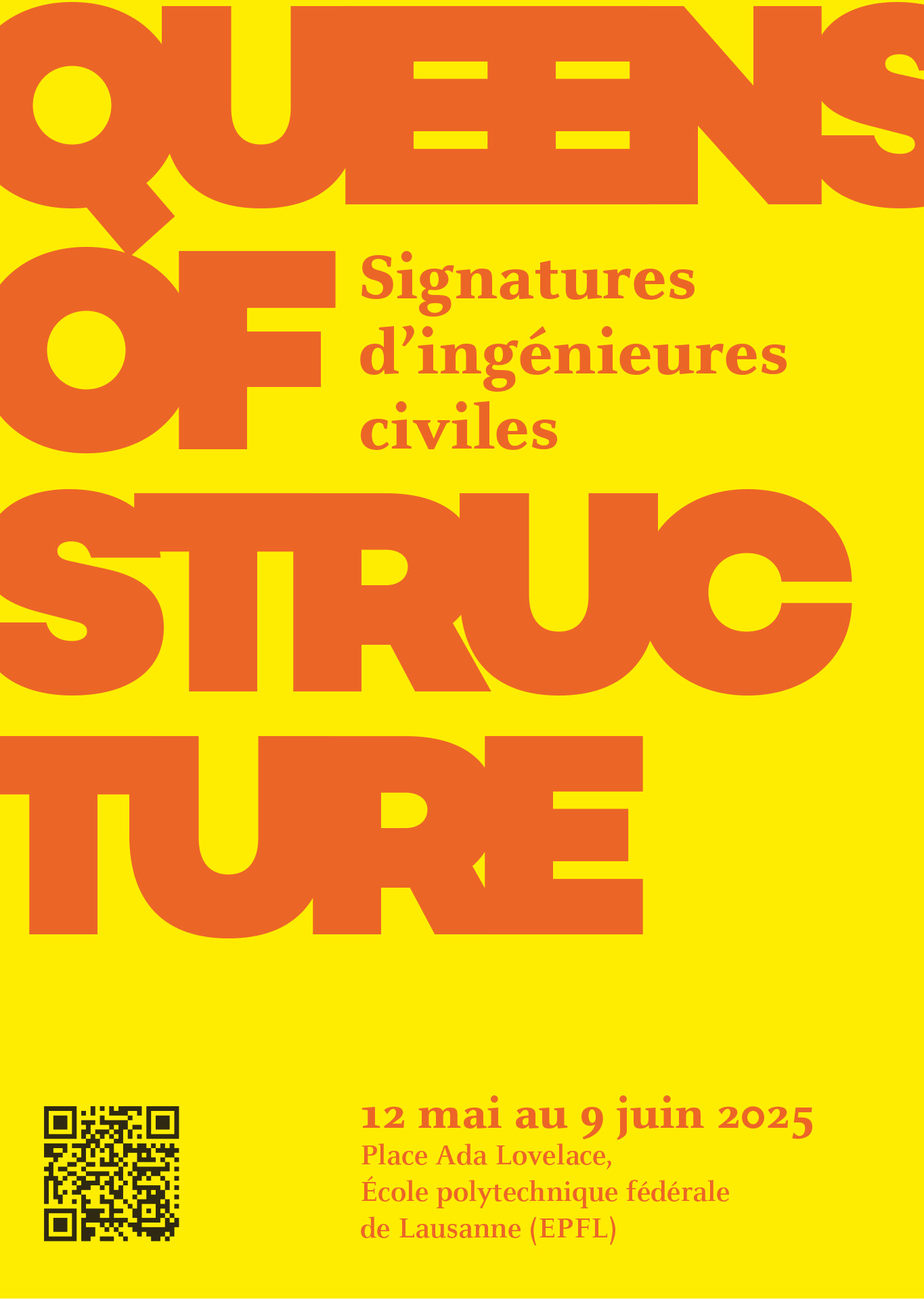 L'exposition Queens of Structure, présentée ce printemps en Suisse romande, veut remédier à cette double invisibilité des ingénieures civiles. En effet, non seulement les contributions des femmes sont rarement perçues, mais le travail de la profession est, dans l’ensemble, peu connu et reconnu. L’exposition vous invite donc à découvrir la diversité du métier d’ingénieur·e civil·e à travers les portraits et projets de 18 femmes, les Queens. Les parcours et les perspectives de ces femmes passionnées par leur métier, illustrent la variété des défis et les différentes manières de les aborder.